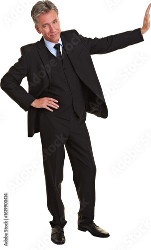 Älterer Geschäftsmann lehnt gelassen an imaginärer Wand