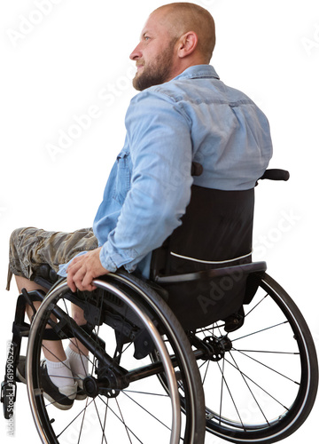 Man in wheelchair looking thoughtfully