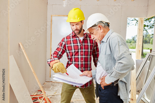 Ausbilder lehrt Schreiner Lehrlinge in der Tischlerei