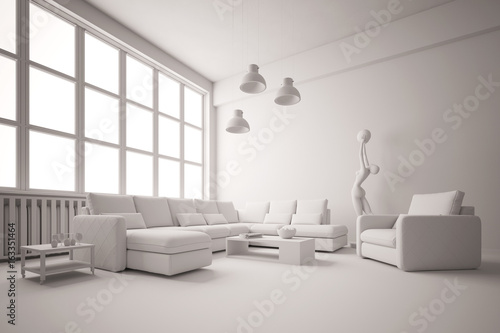 Wohnzimmer im Loft ganz in weiß