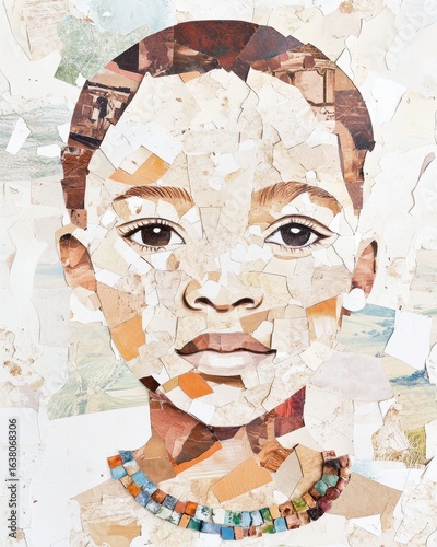 Paper collage depicting a young boy with detailed handcrafted artistry