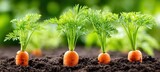 Fresh carrots growing in fertile soil organic vegetable garden healthy eating concept agriculture and farming