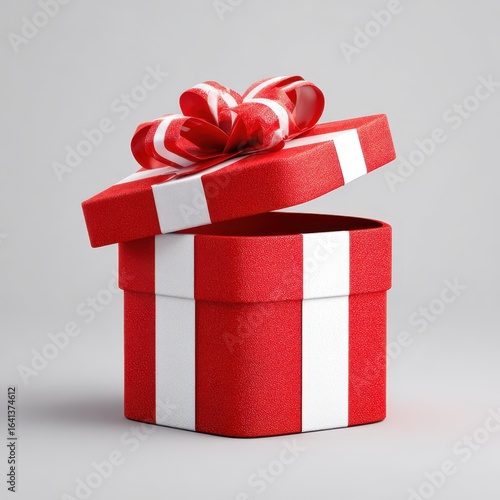 Elegant white gift box with red ribbon bow on a red background, perfect for gifts