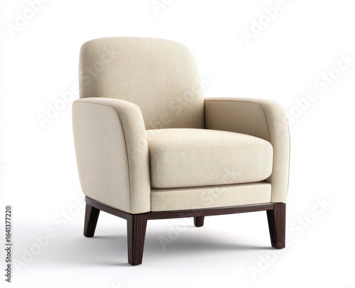 Modern beige lounge chair with soft upholstery and wooden legs design