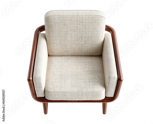 PNG modern solid wood armchair with light beige upholstery, top view perspective