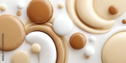 Abstract composition of beige and white circular shapes in soft 3D design