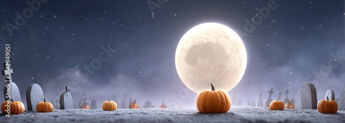 Full Moon Illuminates a Cemetery with Pumpkins on a Calm Autumn Night