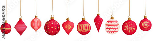 Red and gold geometric Christmas ornaments arranged in an elegant festive display