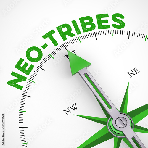 Kompass zeigt auf Schriftzug „Neo-Tribes“ als Konzept