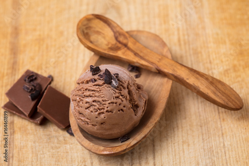 Dunkles frisches selbstgemachtes Schokoladeneis mit Schokolade