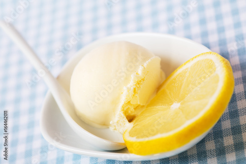 Orangeneis als Fruchteis mit frischer Schreibe Orange