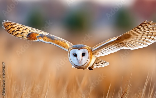 Curious owl peeking around pastel-colored wall with vibrant orange background
