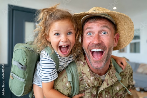 Father Embracing Child with Smiling Faces and Lush Greenery in Background