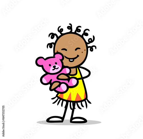 Afrikanisches Cartoon Kind kuschelt mit Plüschtier