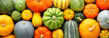Vivid arrangement of colorful pumpkins and gourds showcasing autumn's diversity