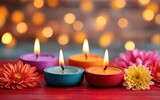 Colorful oil lamps and flowers glowing brightly in a vibrant celebration