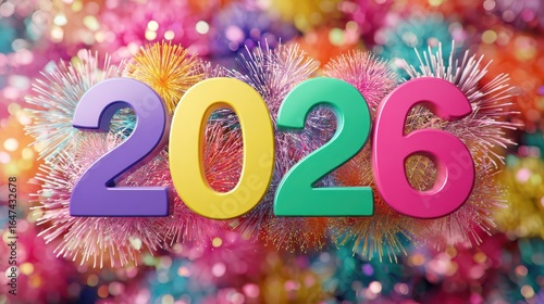 Colorful fireworks and vibrant numbers symbolizing the year 2026 celebration
