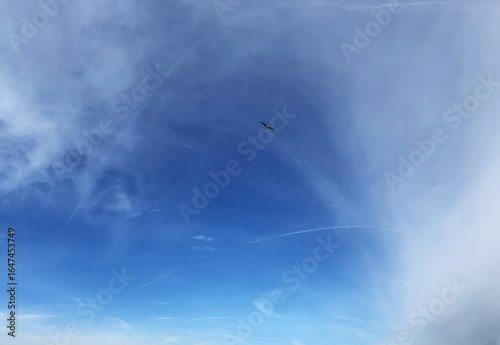 Vivid blue sky with fluffy clouds in a scenic panoramic view