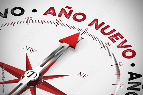 Año Nuevo / Neujahr als Richtung auf einem Kompass
