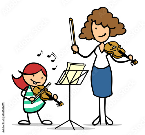 Cartoon Kind bei Geigenunterricht in Musikschule