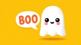 Cute ghost illustration with speech bubble saying boo on yellow background