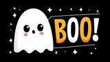 Cute ghost with a speech bubble saying boo on a black background