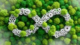 Business woman with magnifying glass exploring nature, concept of detailed analysis in a natural setting