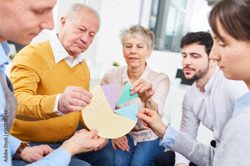 Pfeil vor Mitarbeiter Portraits als Unternehmenswachstum Konzept