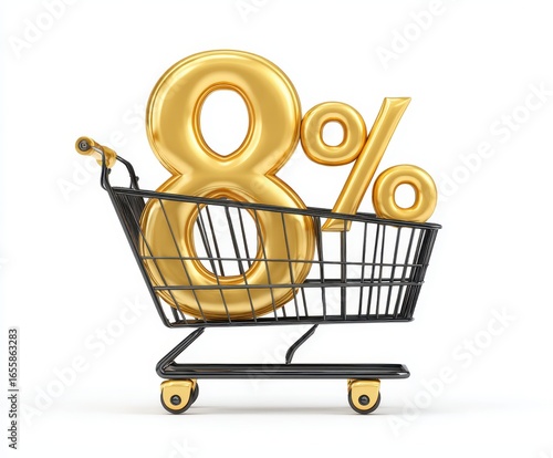 Golden shopping cart on white background, high quality 3D rendered isolated image