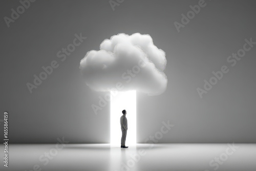 Creative cloud decorations suspended in artistic minimalist indoor setting