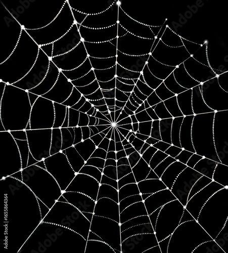 Detailed bright white spiderweb illustrated on a dramatic black background