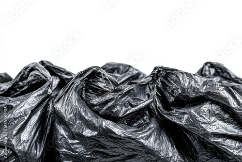 Torn cellophane or plastic polyethylene wrap set isolated in black background