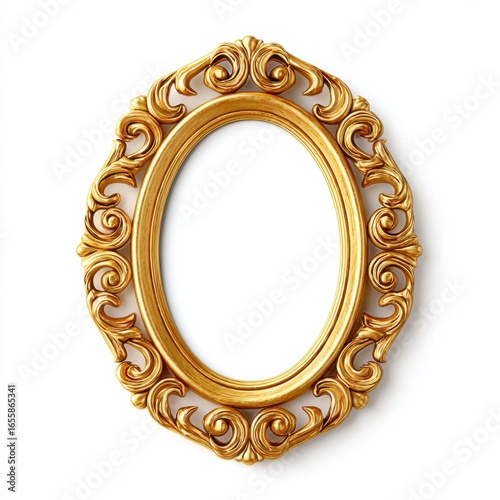 Vintage golden oval frame with ornate decorations on a white background