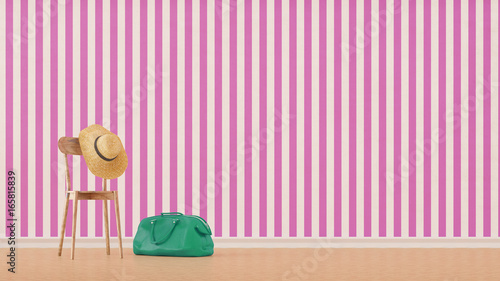 Stuhl vor gestreifter Wand im Flur