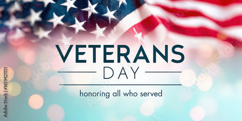 Veterans Day Text Featuring Patriotic Background with an American Flag