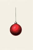 Red Christmas ornament hanging against a white background with minimalist style