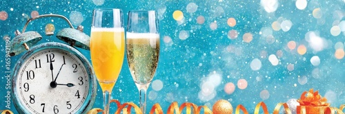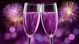 Purple champagne glasses with vibrant fireworks celebration in the background