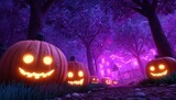Playful glowing jack-o'-lanterns in a magical forest during Halloween