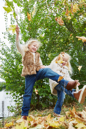 Aktive Kinder werfen Blätter in die Luft
