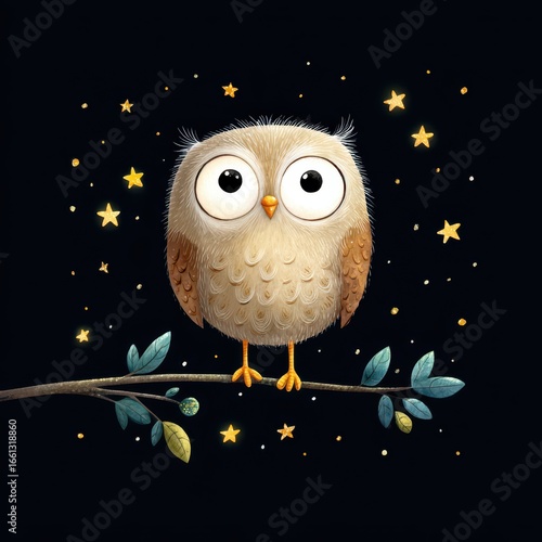 Adorable watercolor cartoon owl illustration perfect for nursery or child decor