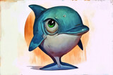 Cute artistic dolphin illustration with a whimsical and funny expression