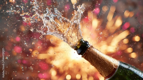 Champagne explosion with colorful fireworks celebrating a festive occasion