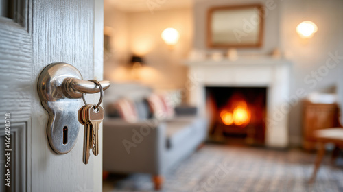 Türknauf an Wohnungstür mit Schlüssel im Schloss