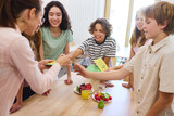 Teenagers discussing nutrition and healthy foods in a school classroom setting