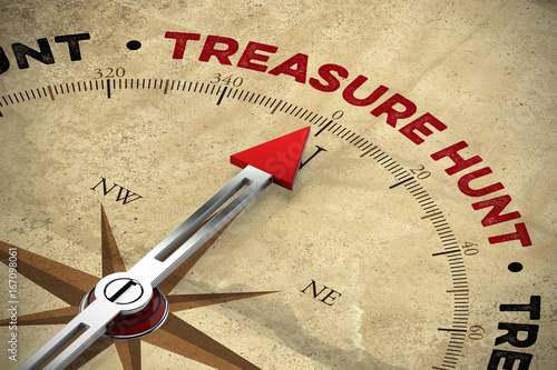 Alter Kompass zeigt auf das Wort Treasure / Schatz