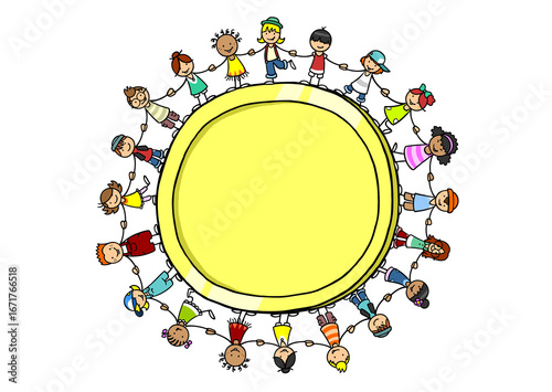 Gruppe Kindergarten Kinder um gelben Rahmen