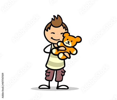 Cartoon Junge kuschelt mit Teddybär Plüschtier