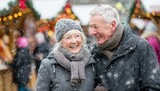 Joyful young friends celebrating Christmas in festive attire outdoors