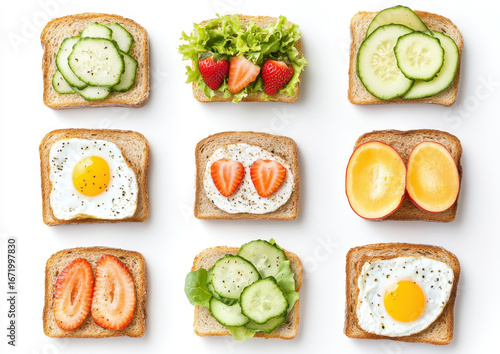 Assorted healthy sandwiches with a variety of fresh and vibrant toppings