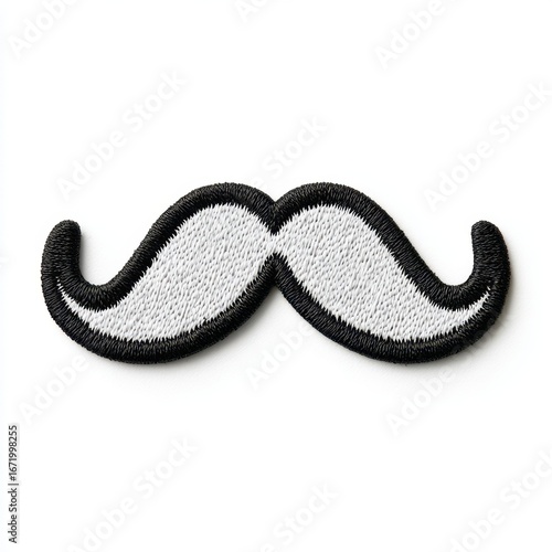 Embroidery patch of a black and white mustache on white background